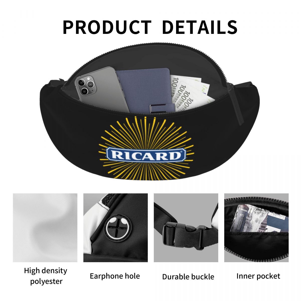 Optez pour notre sac banane Ricard ultra-moderne et découvrez une nouvelle façon de combiner style et praticité. Soyez prêt(e) à affronter la journée avec confiance et aisance grâce à ce sac banane polyvalent qui ne manquera pas de faire tourner les têtes.